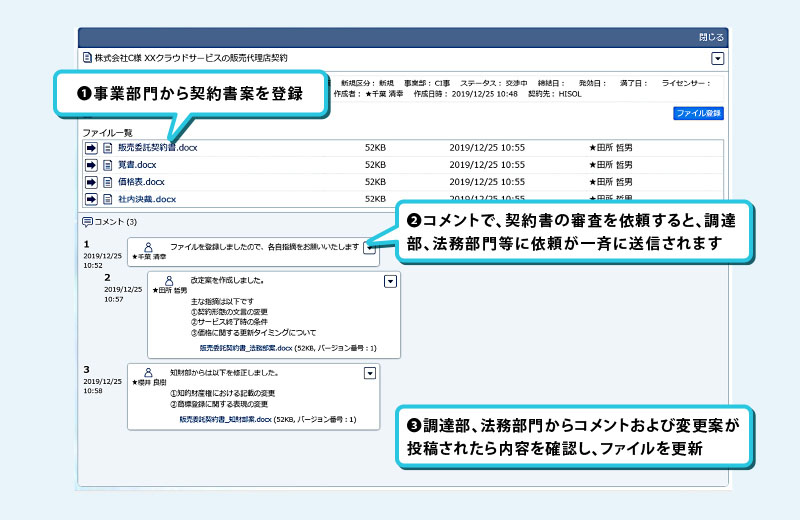 契約は、複数の部門によるさまざまな観点でのチェックを経て完成されるもの。関係者が複雑なコミュニケーションをシームレスに行えるワークスペースの実現が、「隠れボトルネック」を解消します。