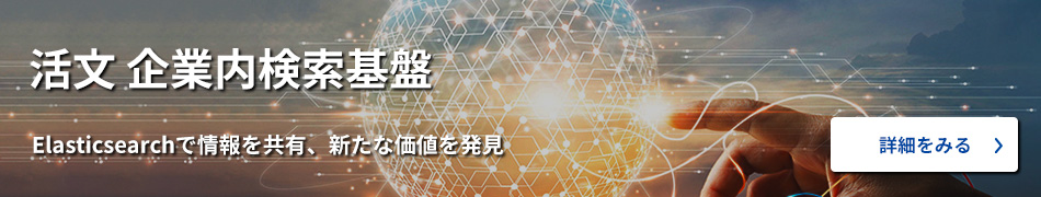 日立ソリューションズでは、大量データの高速検索を特長とするサーチエンジン「Elasticsearch」との連携で企業内の情報検索を効率化する「活文 企業内検索基盤」の提供を行っています。