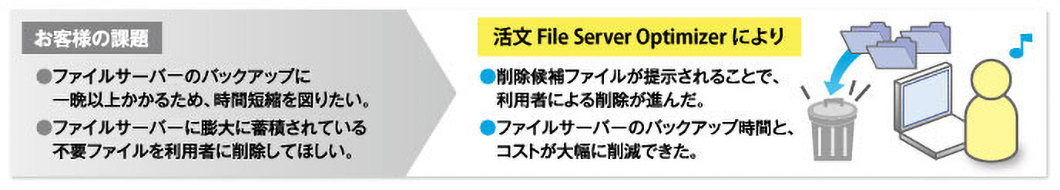ファイルサーバーの容量を減らし、バックアップ時間短縮とコスト削減を実現