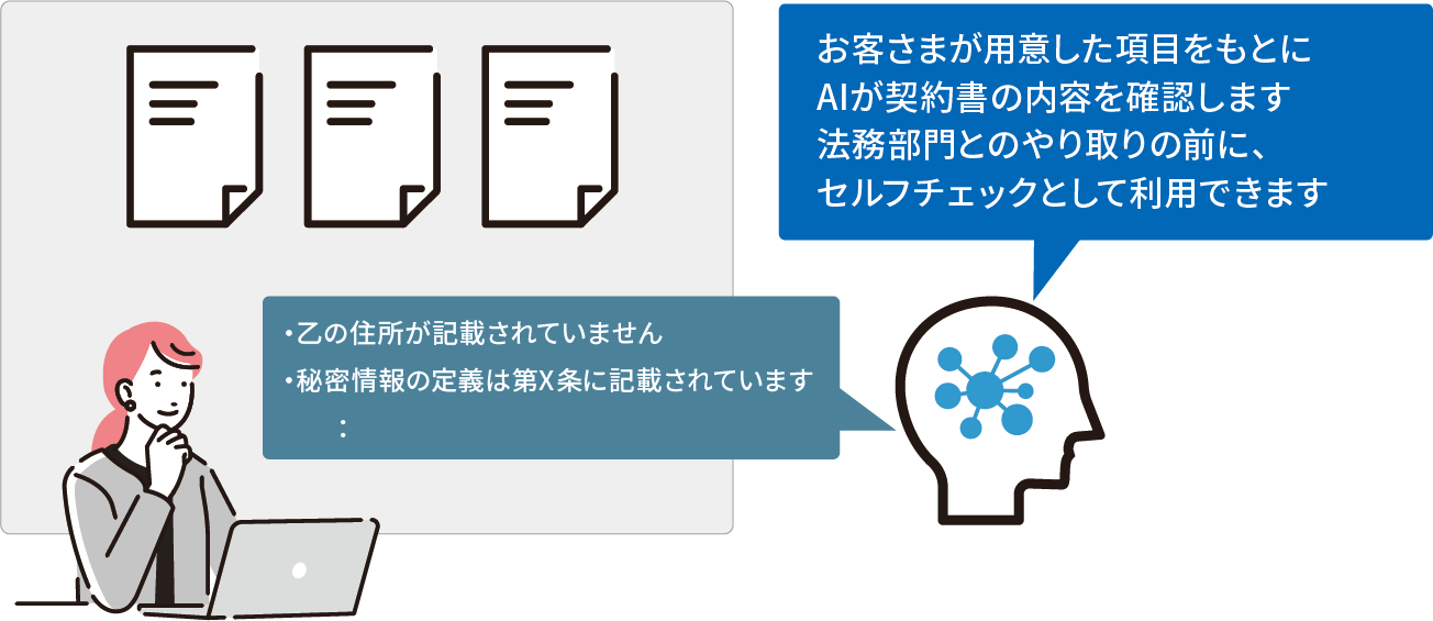 抜けている必要な条文の指摘など、契約書のレビューをサポートします。