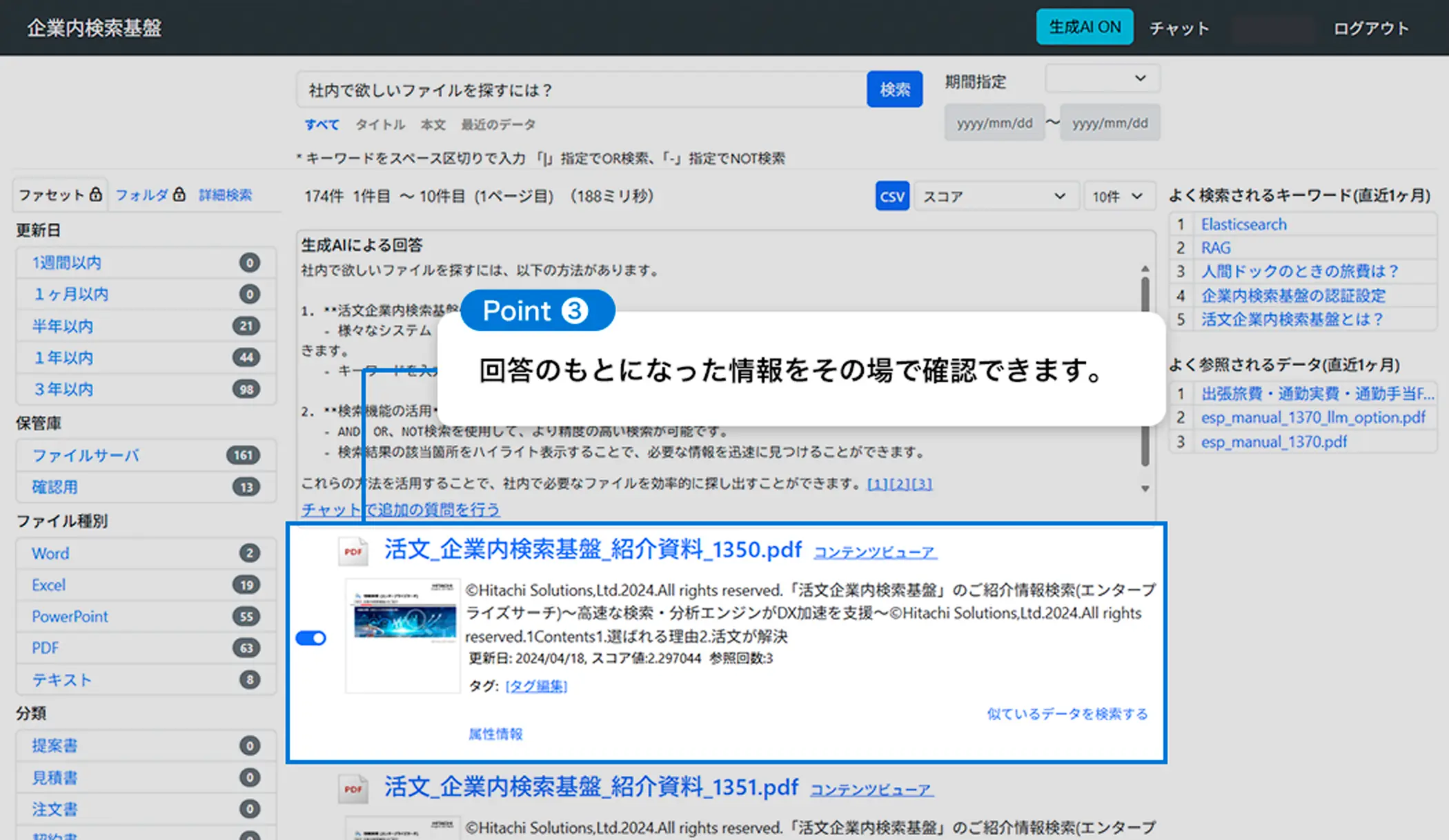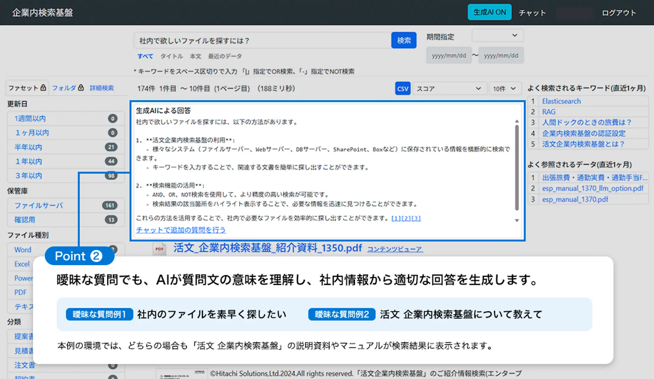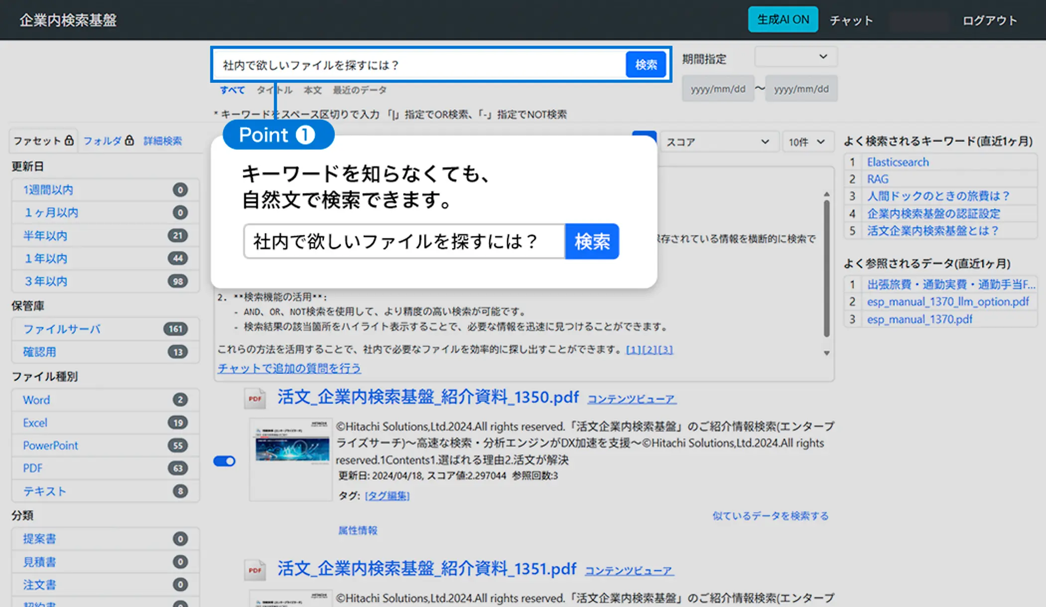- 自然な言葉で検索できるため、誰でも簡単に利用でき、高度な検索スキルは不要。