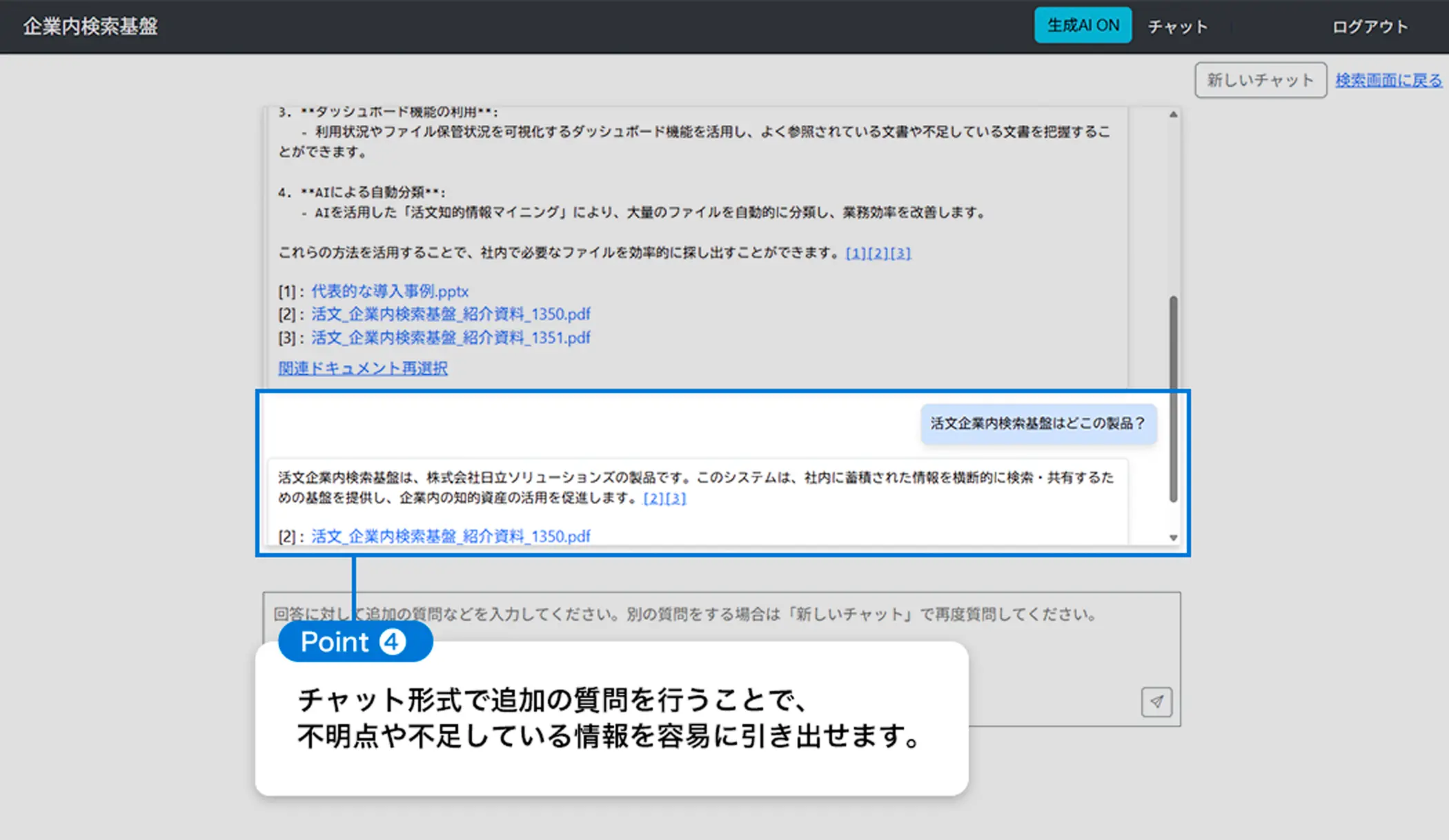 追加の質問を入力 - 必要な情報に素早くたどり着けるため、業務効率が向上する。