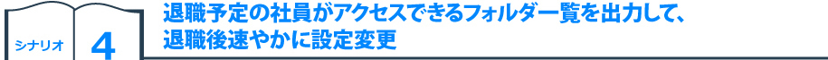 退職者・異動者や特定部門・部署のメンバーについて、アクセスできるフォルダの一覧を出力。アクセス権設定変更忘れ(不要なアクセス権)がないか、簡単に確認できます。