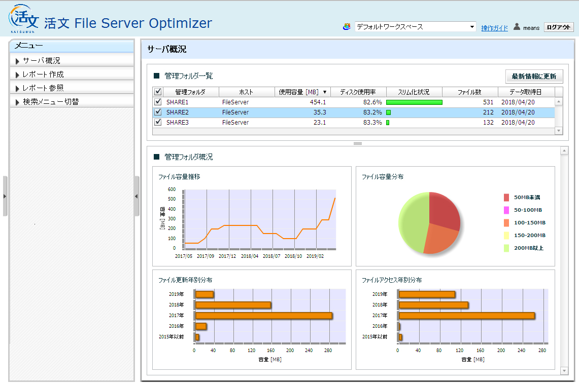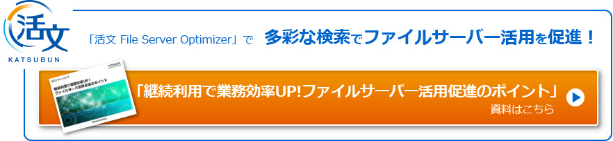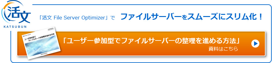 こうした事前作業は現場ユーザーの協力なしには不可能ですが、忙しい!判断できない!などの理由で、なかなか現場の協力が得られないのが現実です。そして、こうした課題を解決し、効率的なスリム化・ファイル棚卸を実現するのが、「活文 File Server Optimizer」です。