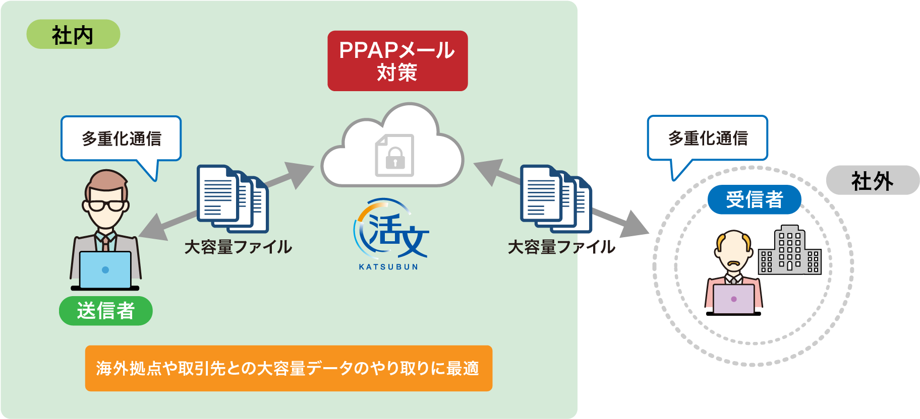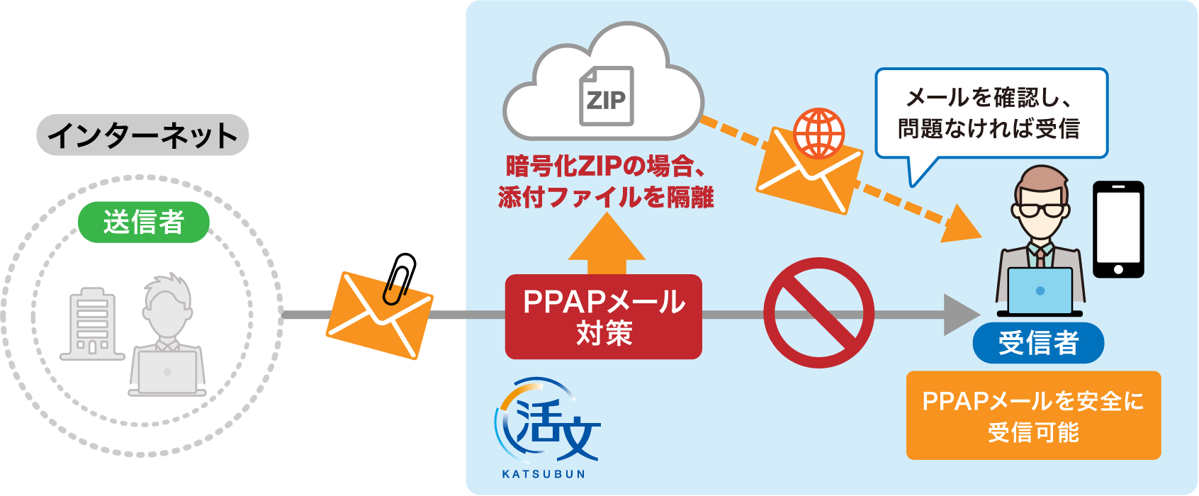 受信対策と送信対策の両面からPPAPメール対策を支援します