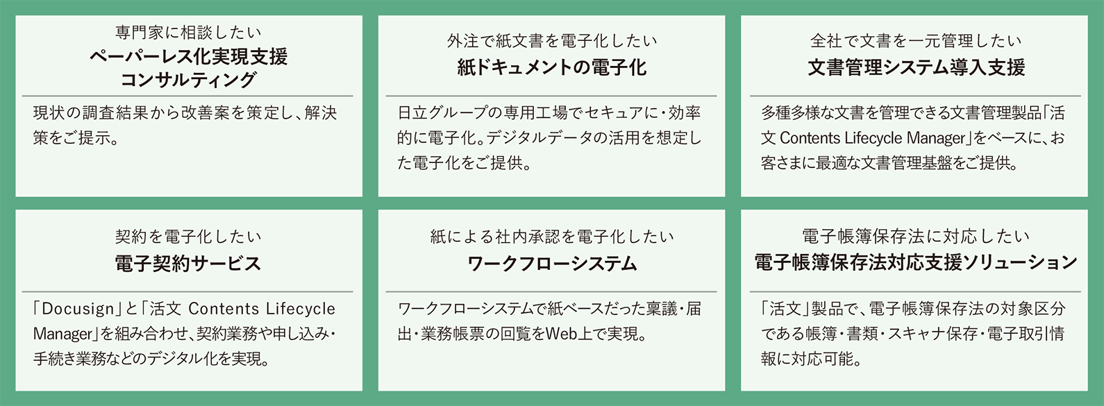ここまで見てきたように、日本企業ではペーパーレス化が着実に進んではきたものの、その進捗には大きな開きがあることがわかります。また実際にペーパーレス化に取り組んできた企業にとっても、重要なのはそれをステップアップさせ、DXに貢献できる状態にすることだと言えます。このようなペーパーレス化を実現するには、二人が提示する「4カ条」を意識して取り組みを進めていくといいでしょう。さらに、日立ソリューションズのような専門家に相談することで、ペーパーレス化の成功はより現実味を帯びてくるはずです。