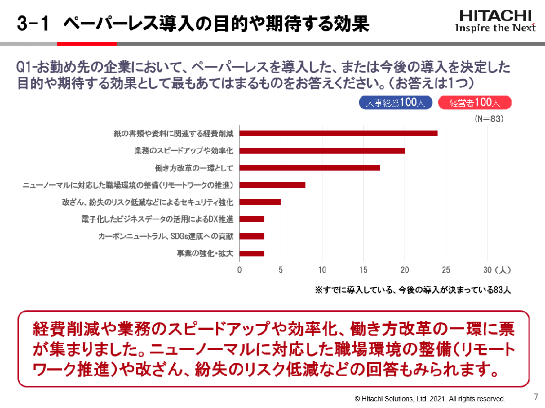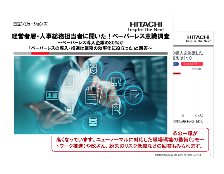 株式会社日立ソリューションズは、「経営者層・人事総務担当者に聞いた!ペーパーレス意識調査」を実施しました。