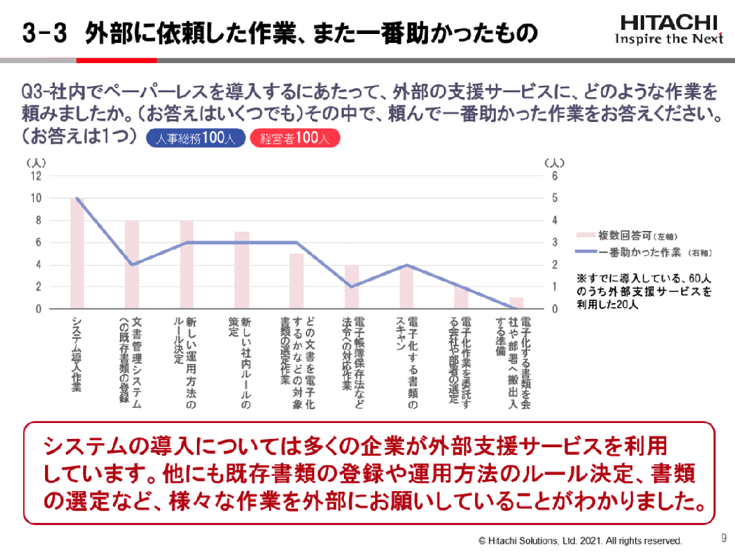 企業はペーパーレス導入の際に、外部の支援サービスにシステムの導入作業をはじめさまざまな作業を依頼している