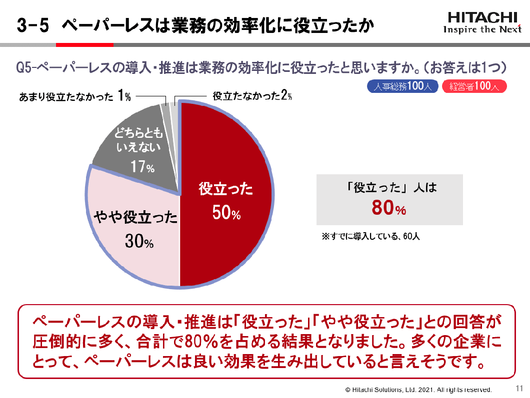 ~ペーパーレス導入企業の80%が「ペーパーレスの導入・推進は業務の効率化に役立った」と回答~