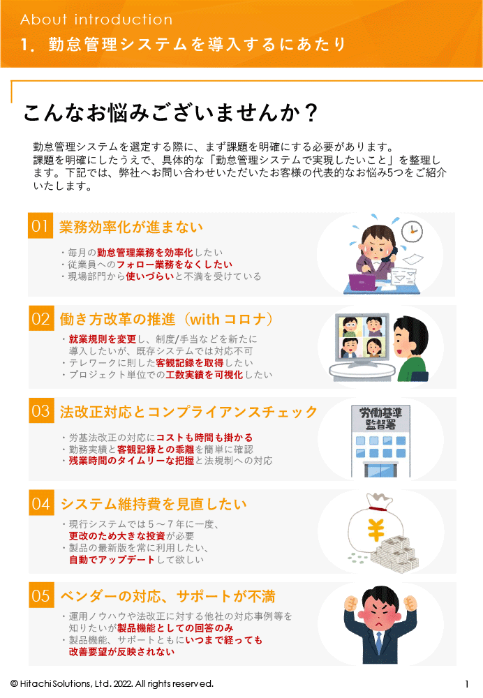 当資料では、勤怠管理システムの昨今のトレンドから、システムを選定するポイントまでをご紹介いたします。