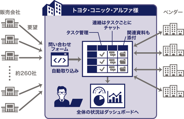 トヨタ・コニック・アルファ株式会社様プロジェクト全体を見通せるシンプルな管理で専任の管理者や報告書の作成が不要に