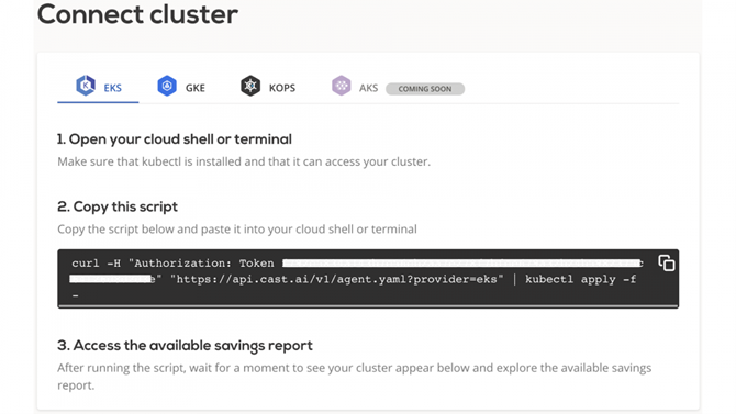 クラスタの潜在的な節約効果を確認するには、Read-Onlyのスクリプトを使用して、クラスタにCAST AIエージェントをデプロイする必要があります。