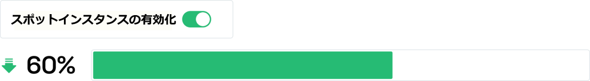 また、該当するワークロードにスポットインスタンスを追加することで、平均して金額ベースで60%もの大幅な節約を実現します。
