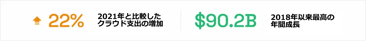 IDCは、クラウド支出が2021年と比較して22%増加し、2018年以来最高の年間成長率である902億ドルに達すると予測しています。4