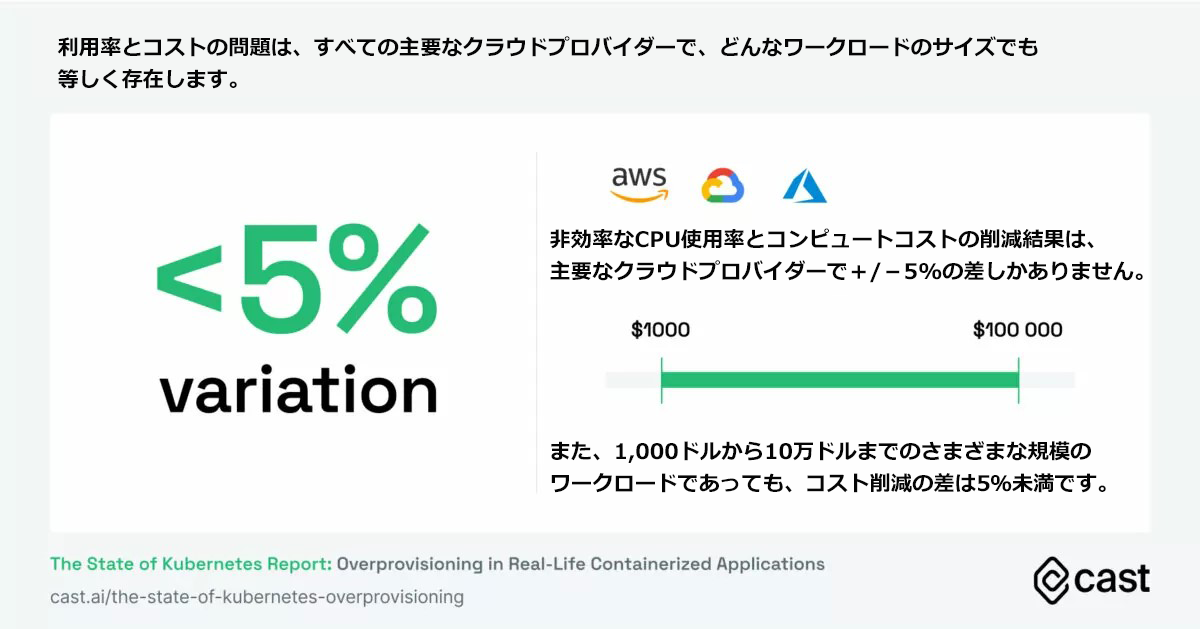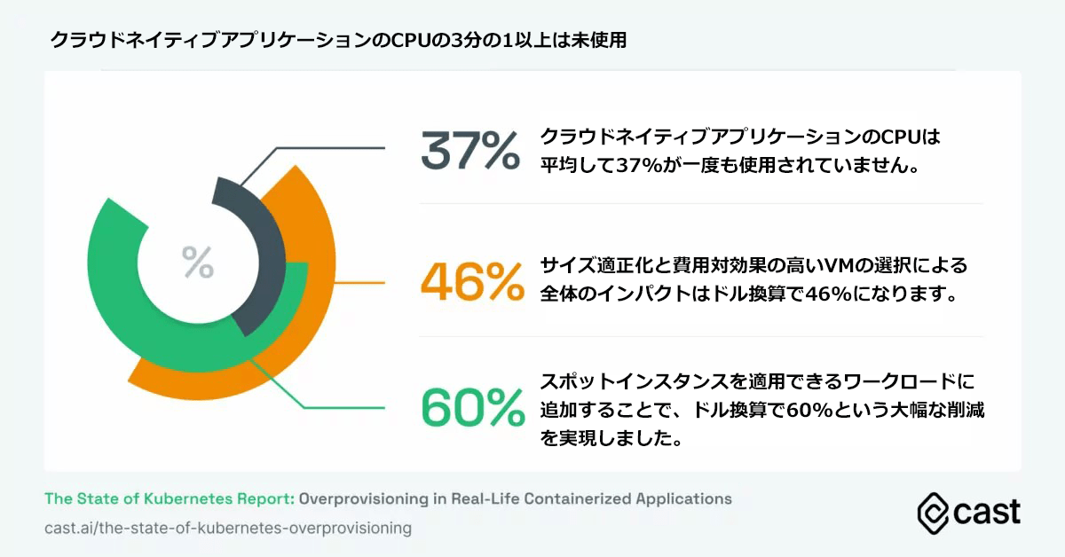 データは、この種のオーバープロビジョニングを排除することで、組織が毎月のクラウド支出をほぼ50%削減できることを示しています。
