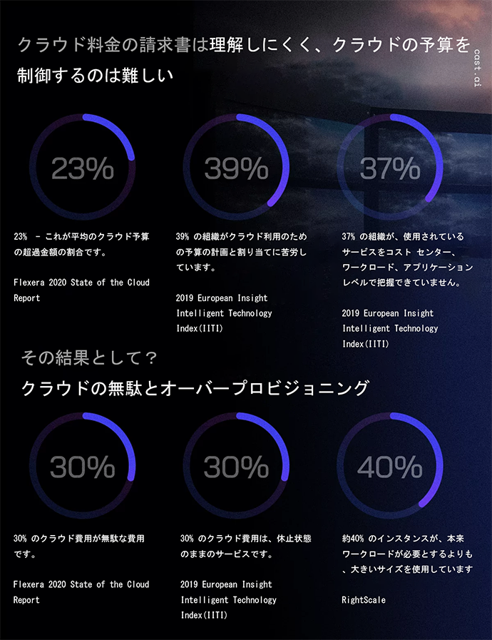クラウド自動化ソリューションは、未使用のインスタンスとプロセスをシャットダウンして、クラウドのコストを削減します。これがなされずに、クラウドにデプロイされたインスタンスが放置されることは、想像以上によくある話です。