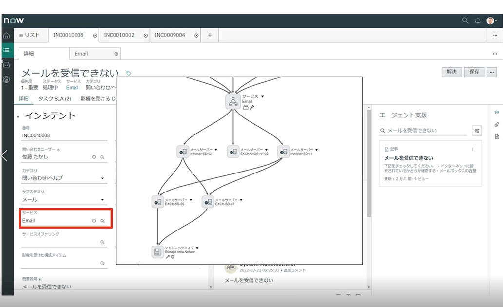 「例えば、タブ表示で複数のインシデントを素早く参照できることに加え、構成情報をマップとして表示することで構成アイテムの関連性や影響範囲の特定を容易にします」(白石)。