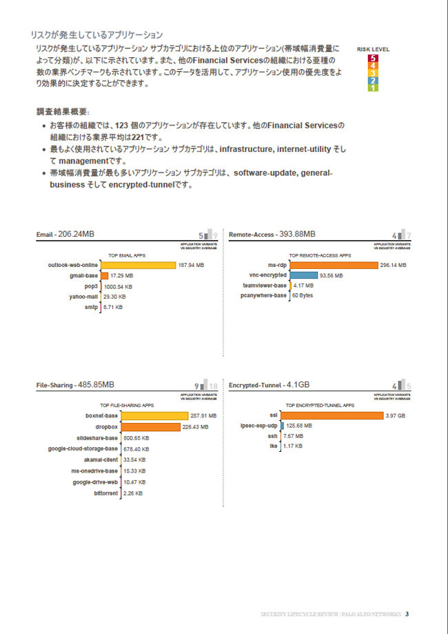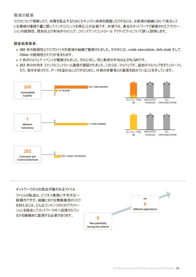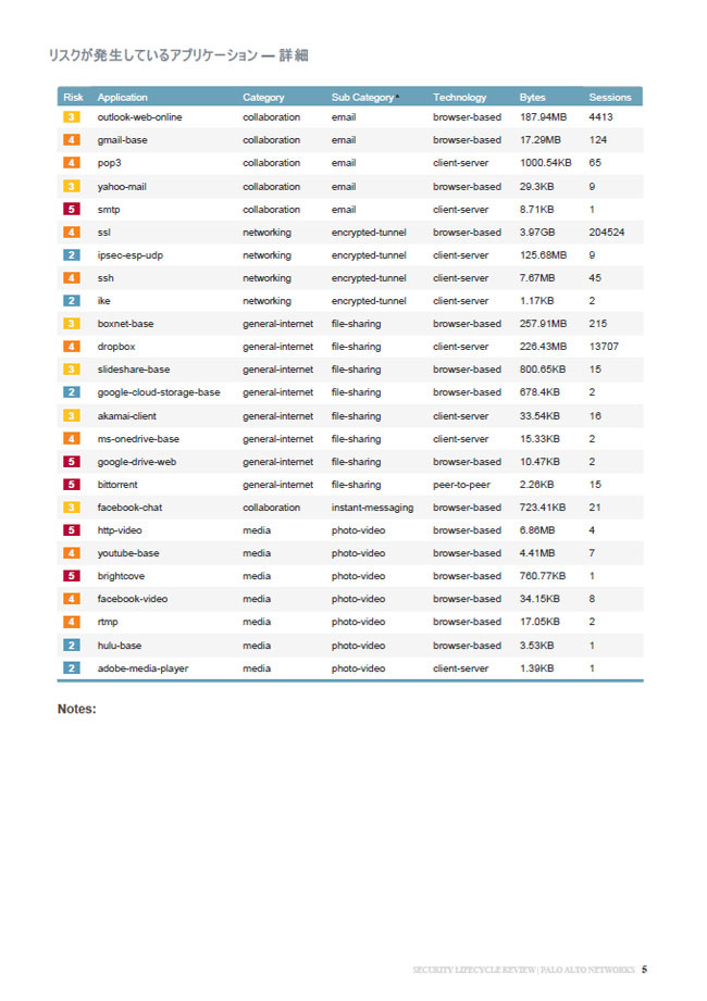 リスク分析レポート(Security Lifecycle Review 以下SLR)は、次世代ファイアウォールをお客さまのネットワーク環境に持ち込み、セキュリティリスクの分析とその対策を記載した約20ページのドキュメントです。