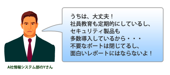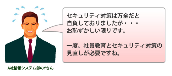 これによりセキュリティ、データ消失、および著作権侵害のリスクがA社さまにおよぶ可能性があります。 -