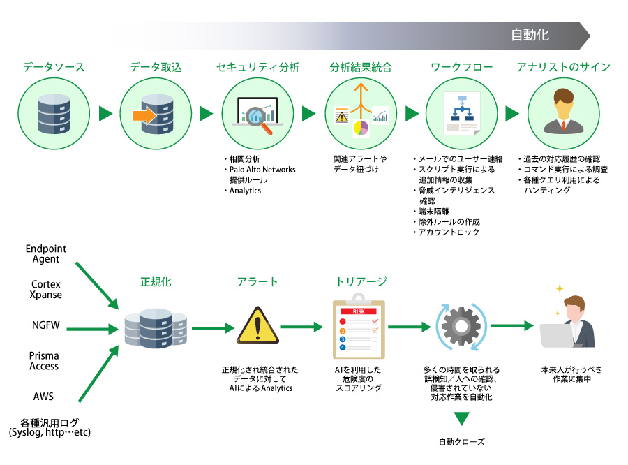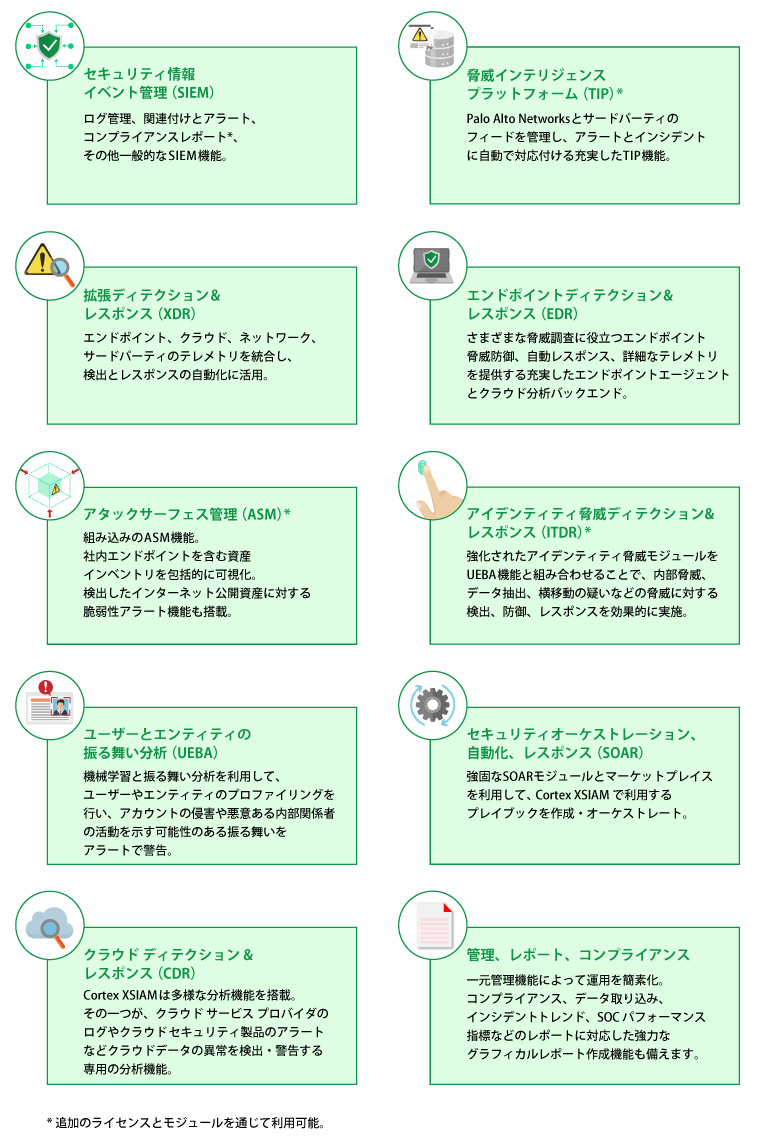 Cortex XSIAM は、以下の SOCチームに必要な機能を単一の統合プラットフォームとして提供可能です。