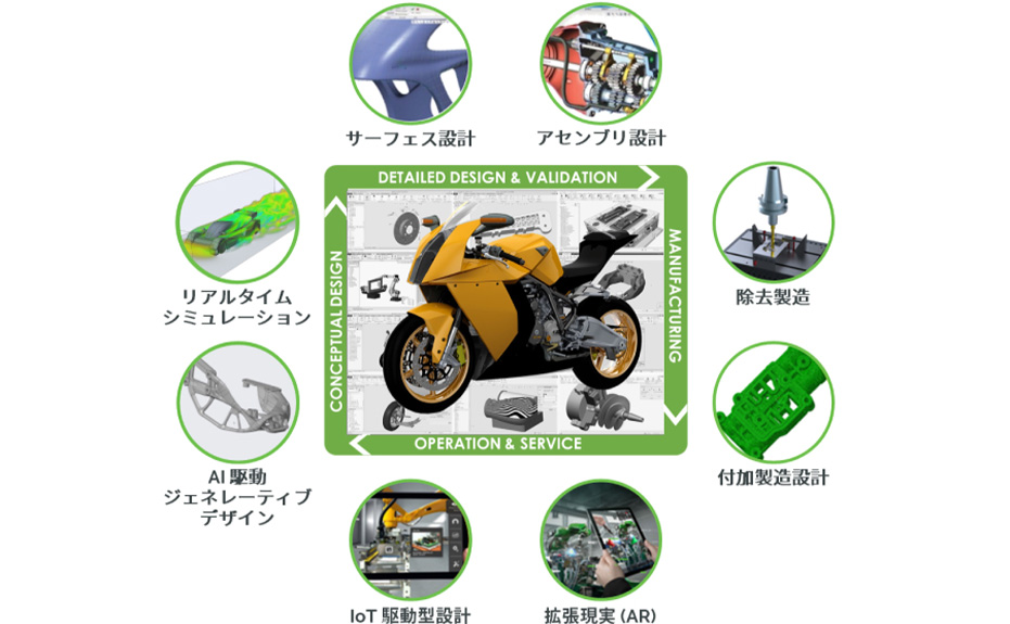 Parametric を軸として、多彩な機能をもったアプリケーション群が製品の設計と開発のさまざまな状況に対応します。