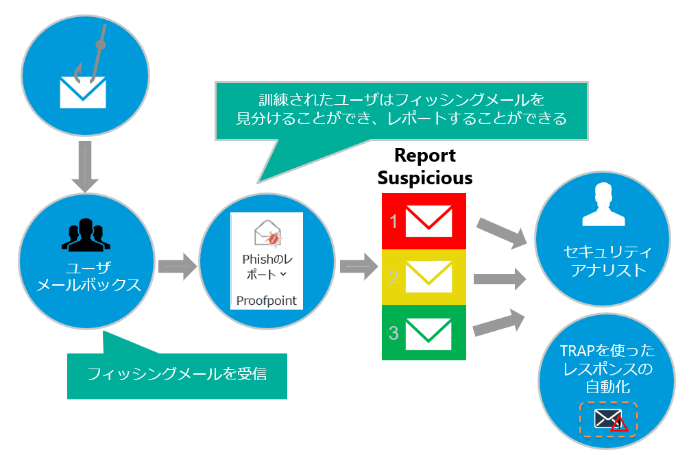 - Threat Response Auto-Pull(略称:TRAP)オプションと連携し、報告された脅威あるメールを自社メールボックス*から自動削除