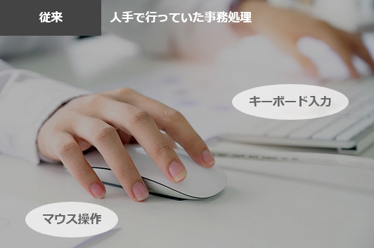 RPAはパソコン上で人が日常的に行っているマウス操作やキーボード入力などの操作手順を記録し、それを高速で正確に実行することができます。その結果、既存の事務的業務を効率化させ、生産性を向上させることが可能になります。
