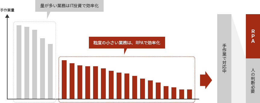 システム化しても費用対効果が小さい業務は、RPA適用で効率化します。