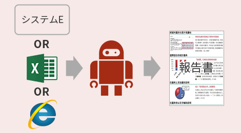データを複数のシステムに入力したり、データ同士を突合せしたり収集したデータを元にレポート作成をするといった作業で効果があります。