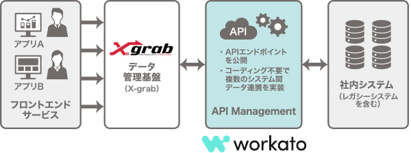 現在、同社は「Workato」が提供するAPIを使って、X-grabと4つのレガシーシステムをAPIで連携。「『Workato』はさまざまなサービスを容易に連携でき、設計者がそのまま開発者になれるのが大きな強みです」と池田氏が語るように、開発要員を増やすことなく内製化できる環境が実現しました。実際、従来なら業務フローの設計とAPI開発に数カ月かかっていたところを、「Workato」では1週間から2週間でのスピード開発が可能となっています。