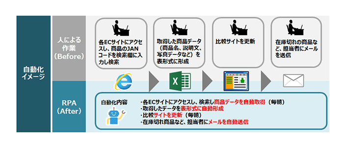 - 同社が運営する消費者向けECサイト比較サービスの日々の更新作業を自動化
