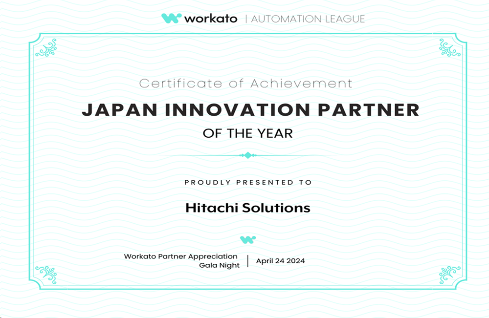 日立ソリューションズ、Workatoより Innovation Partner of the Year-Japanを受賞