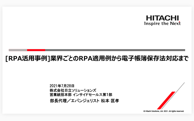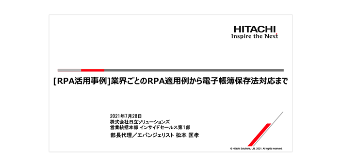 2021年7月28日に開催したオンラインセミナー「[RPA活用事例]業界ごとのRPA適用例から電子帳簿保存法対応まで」のオンデマンド版を公開します。