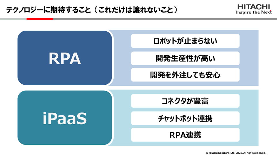 クラウドシフト時代においては、RPAとiPaaSが業務自動化に必要なテクノロジーとなります。