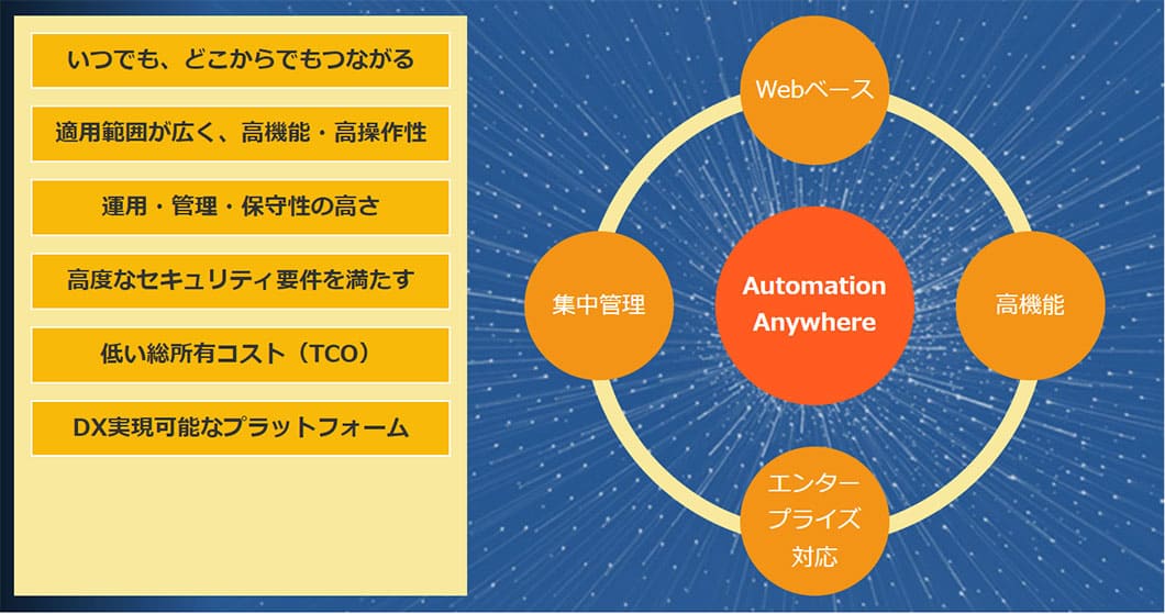 Automation Anywhereは、RPA選定の重要ポイントをすべて満たした製品です。