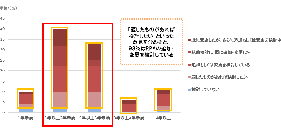 93%のRPA担当者が、RPAの追加や変更を検討したり既に変更したりしている