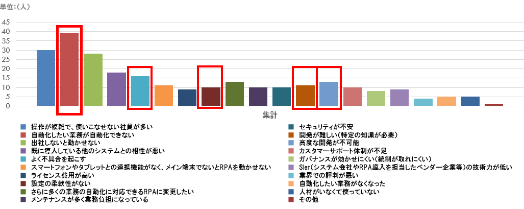 全体の4割が「自動化したい業務が自動化できない」と回答しました。その原因としては、