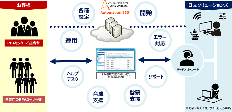 お客さまと日立ソリューションズのやり取りは、「RPA運用支援クラウドサービス」を使ってオンラインで行います。
