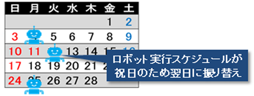 休業日の自動振替実行など、業務カレンダーに合せた柔軟なスケジュール実行ができます。
