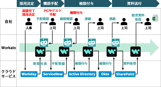 (採用→機器手配→権限付与→資料送付)