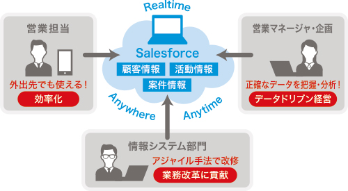 - 外部からモバイルでアクセスできるため、効率的な営業活動が可能