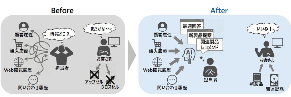 顧客情報が複数システムに分散し、担当者による提案が属人化。