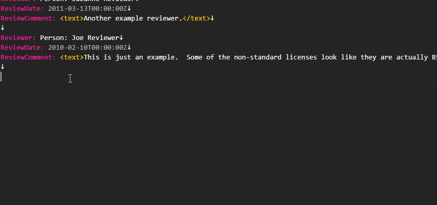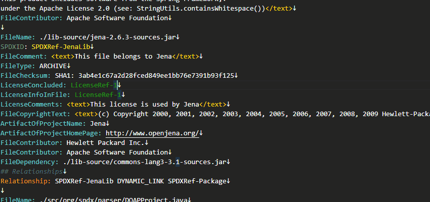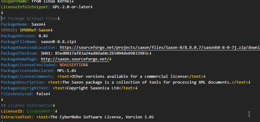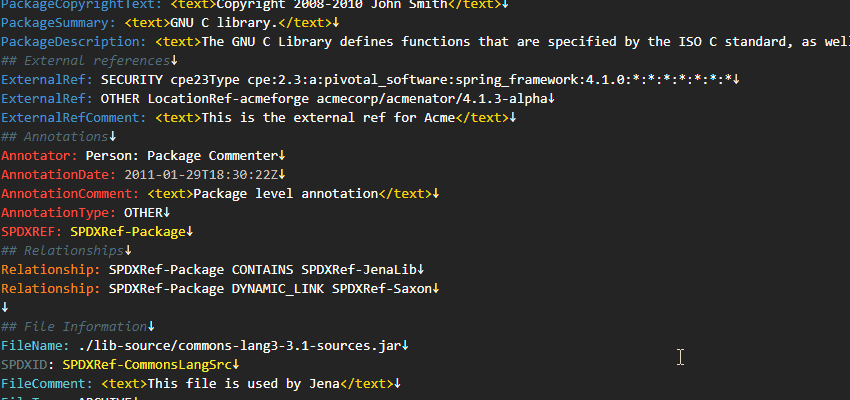 すべての機能はSPDX Specification v2.2内で定義されているtag:value形式(.spdxファイル)を対象に実装したものになります。