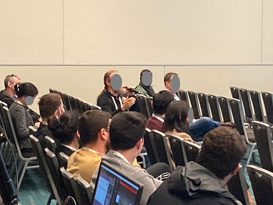 我々の発表は3日目に行われました。前日までにほかの発表を色々見て回っていたのですが、聴講してくれた方の人数はそこそこいたように記憶しています。中身は4部構成でイントロ、開発者の活動をまとめた「Developer Side」、マネージャーの活動をまとめた「Manager Side」、総括となっており、本番はイントロダクションと「Manager Side」、まとめを上司が担当し、「Developer Side」を自分が担当する形で発表しました。終了後の質疑応答では質問、意見も頂けて小規模ながらもオフラインらしいコミュニケーションの伴う時間になったと思います。