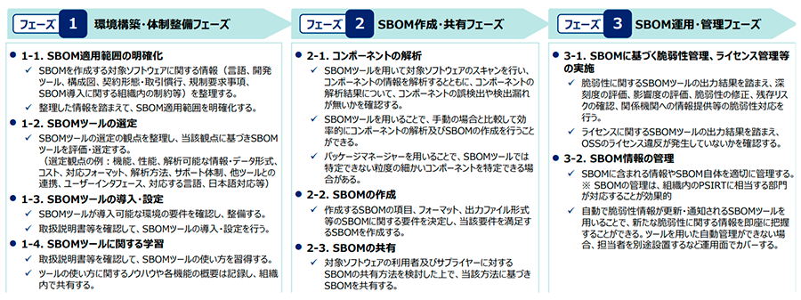 手引書にまとめられたSBOMの導入プロセス(概要)