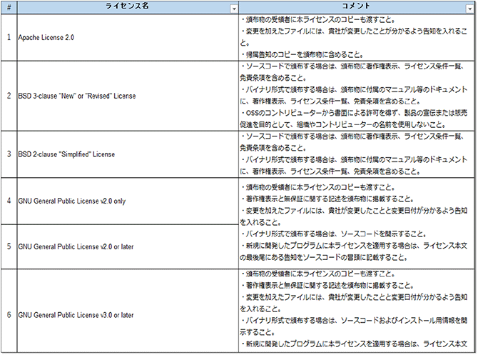 - 検出したOSS、およびそれらのライセンスや脆弱性に関する情報を記載します。