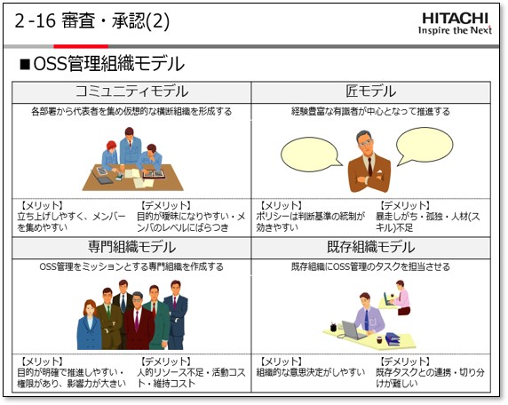 - 約3カ月間で数回に分けて、議論を交えながらOSSガイドラインを完成させました。OSSガイドライン作成に関わったメンバには、OSSにあまり馴染みのない者もおりましたが、日立ソリューションズのコンサルタントがしっかりサポートしてくれたことで、OSSガイドラインを完成させることができました。