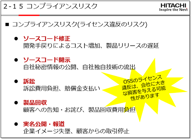 組織としてOSS管理を行っていくうえで、組織のメンバーがOSSについてしっかり理解していることが重要になります。この「OSS教育」は、組織のメンバーのOSSに関する知識レベル向上を目的とし、OSSの基礎から教育を行うものです。