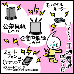 近年では、モバイルデバイスの普及などにより、無線LANネットワークの導入は目覚ましく進み、街中では多くの公衆もしくは企業内、家庭内の無線LAN機器やモバイルルーターなどの電波が飛び交っています。無線LANネットワークはその特性上、電波干渉によって速度が遅くなったり、つながらなくなる可能性があります。