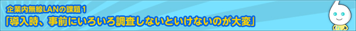アクセスポイント(以下:AP)の設置場所によっては、フロアの中でも電波の入りにくいところができることがあります。また、APに接続するPCなどのクライアント端末の台数にバラツキがあると、各APへの負荷の差による通信速度低下を招くこともあります。したがって、安定した無線LAN環境を導入するためには入念な事前の調査、対策が必要でした。